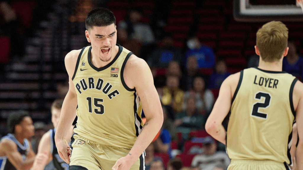 Let’s get the obvious out of the way: Zach Edey is an unstoppable force and an immovable object all wrapped into one. In their three games of the tournament, Edey averaged 22.7 points and 10.3 rebounds per game. While he may not be the most skilled player in the country, he is surely one of the most dominant. Standing at 7 ‘4 and weighing in at 290 pounds, there is basically no one in the country that can out muscle this man. This leads to coaches having to double Edey in the post, which, with his frame, allows him to pass out to the perimeter, allowing Matt Painter’s elite shooters to shine.