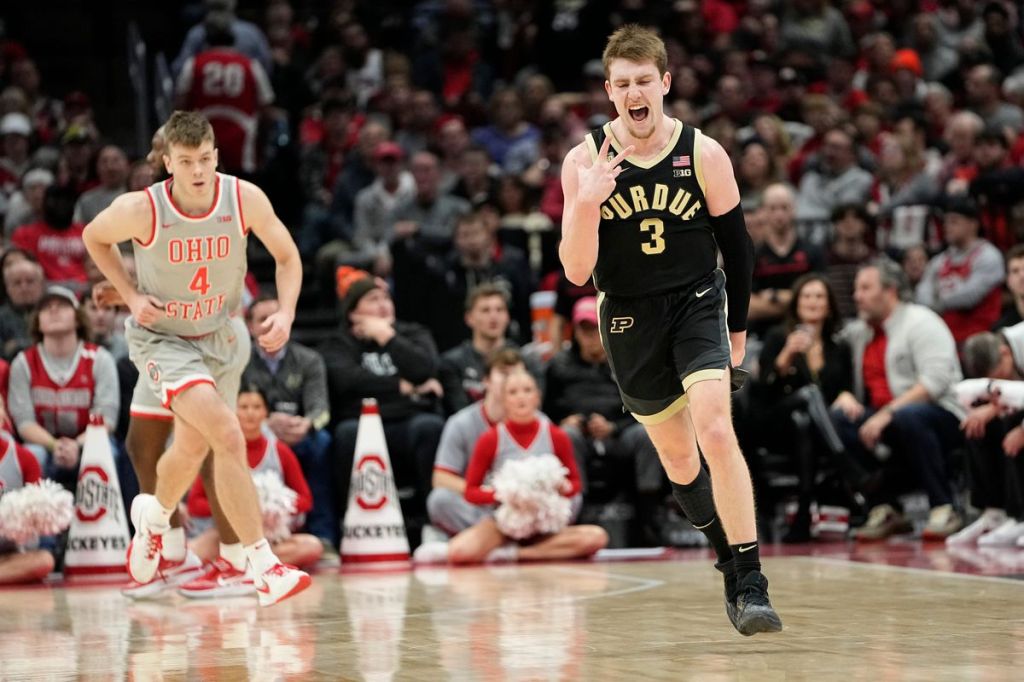 On the first possession, the Buckeyes didn’t help in the paint – leaving Edey an easy jump hook. On the next possession, OSU doubled Edey – leading to a wide-open Fletcher Loyer from behind the arc. Matt Painter can run this set over and over again – and – if Loyer, Ethan Morton and Braden Smith are able to hit their shots, this offense is unbeatable.
